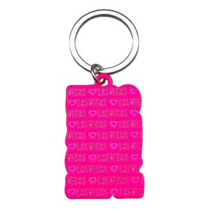 Las Vegas Words Pink Red colored metal Keychain, Key Ring Chain