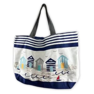 London Town Blue draft Canvas Tote Bag with Zip Closure and Inner Zipped Pocket